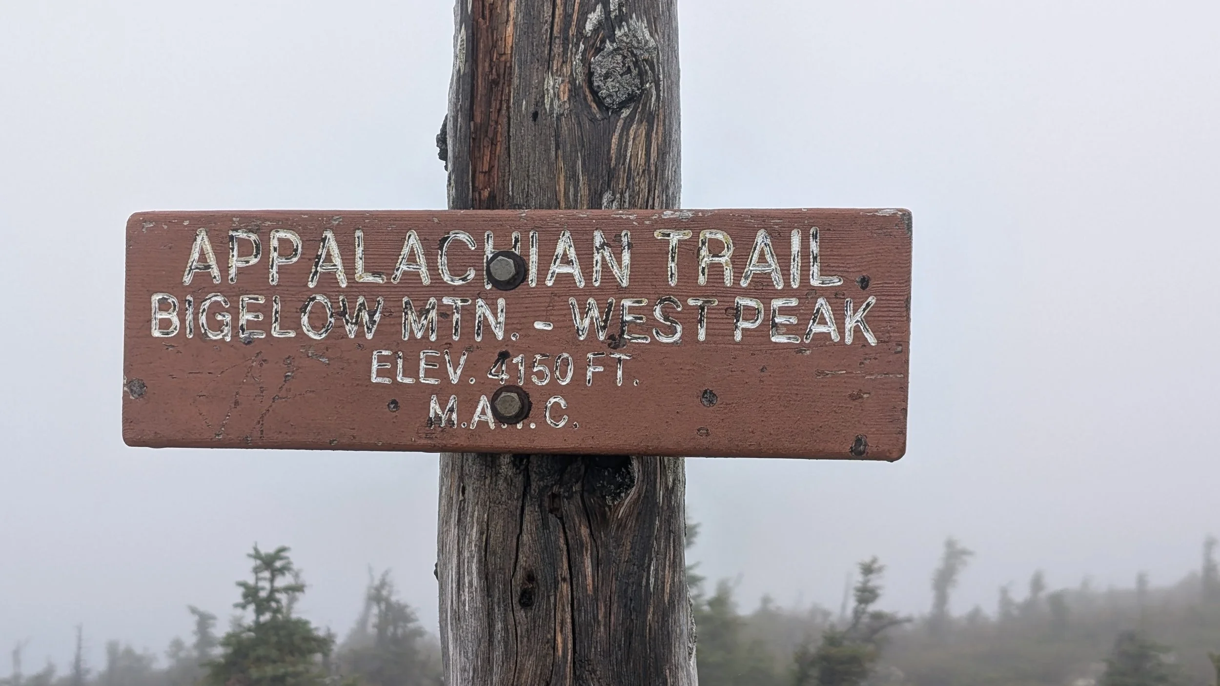 I proceeded on from there, and it was very cloudy, so the rocks were pretty slick up on the Bigelows. No view plus slick rocks equals slowgoing. About halfway through the day, I bumped into Turbo, who was heading north. It was great to see him. Although I had exchanged some information with Shenanigans earlier, I didn't with Turbo, but I wished him the best. I might or might not see either of them again. I don’t know. Things are sort of getting down to the end, so you start saying your goodbyes to people you suspect will be finishing the trail ahead of you, since that could be the last time you see them. It's kind of an interesting dynamic.